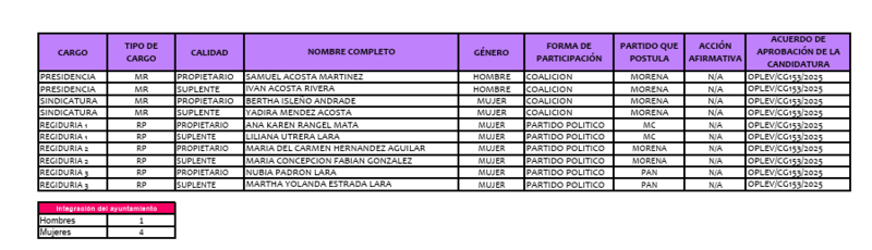 Informa que el Cabildo del municipio de Medellín de Bravo quedó integrado de la siguiente forma: