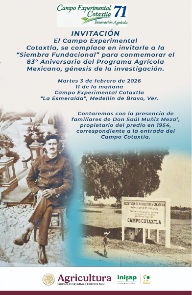 A la ceremonia que se realizará a las 11 de la mañana en el Campo Experimental Cotaxtla con la presencia de la hija y descendientes del señor Saúl Muñiz.