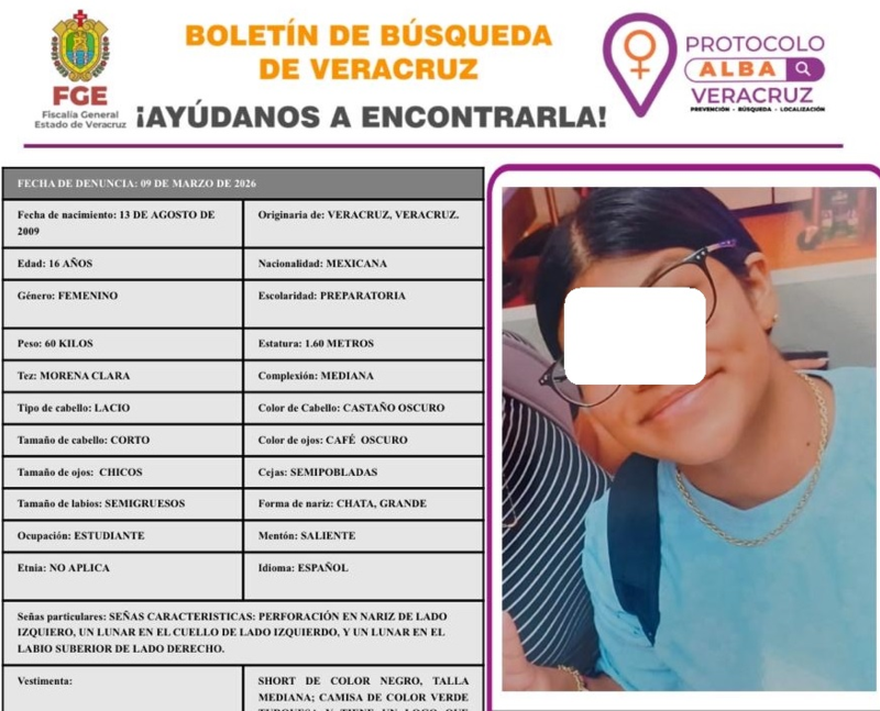 La Comisión Estatal de Búsqueda de Veracruz informa que fue localizada con vida Alhely de los Ángeles A. G., de 16 años de edad.