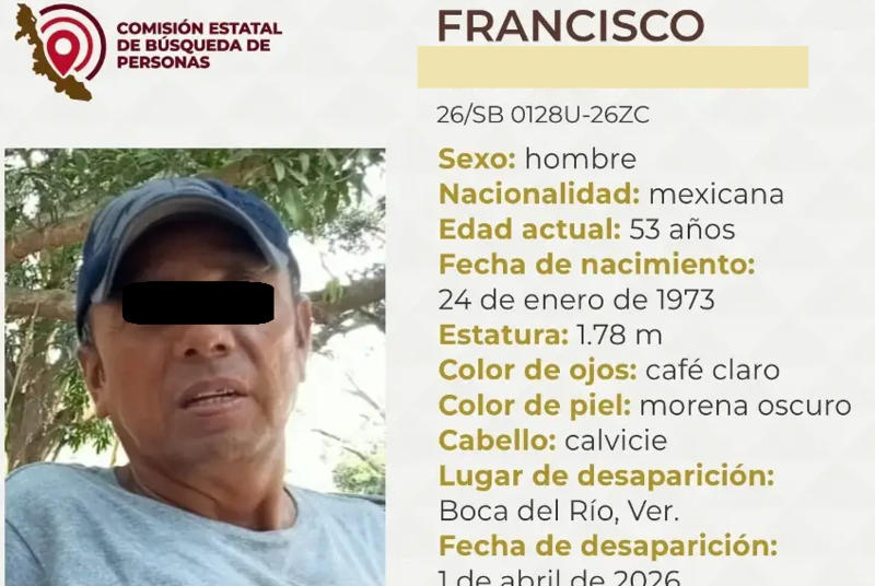 La Comisión Estatal de Búsqueda del estado informa que fue localizado un hombre identificado como Francisco C. M., de 53 años de edad.