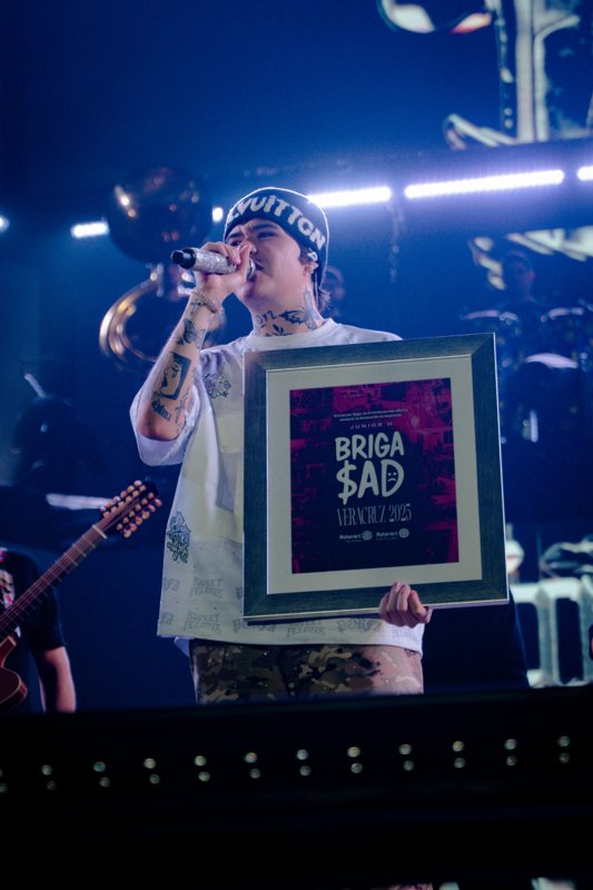 El guanajuatense Junior H presentó en Veracruz su nuevo tour “México en lágrimas $ad Boyz Tour 2025”, el cual fue ovacionado de principio a fin por miles de asistentes que se dieron cita en la Ganadera Ylang Ylang.