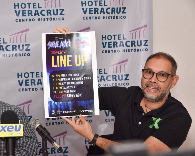 En una segunda conferencia de prensa en este municipio, los empresarios organizadores del The Final Beat Veracruz 2025 con el Dj internacional Steve Aoki, quedó confirmada su presencia en el WTC el lunes 29 de diciembre.