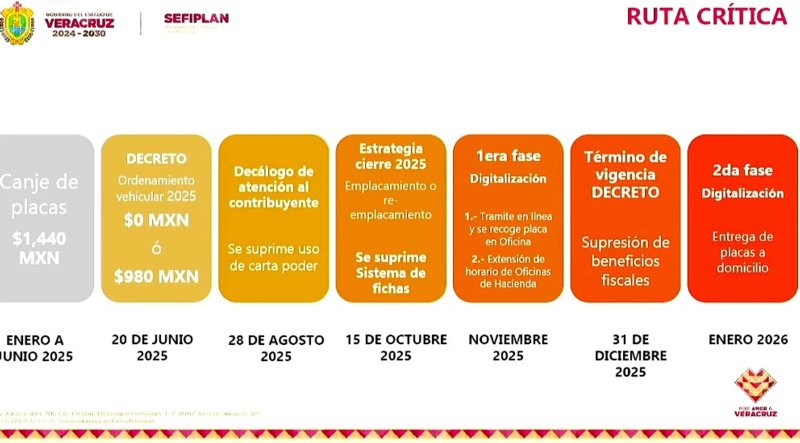 En tanto que a partir de enero de 2026, el trámite se hará en línea y las placas llegarán a domicilio.