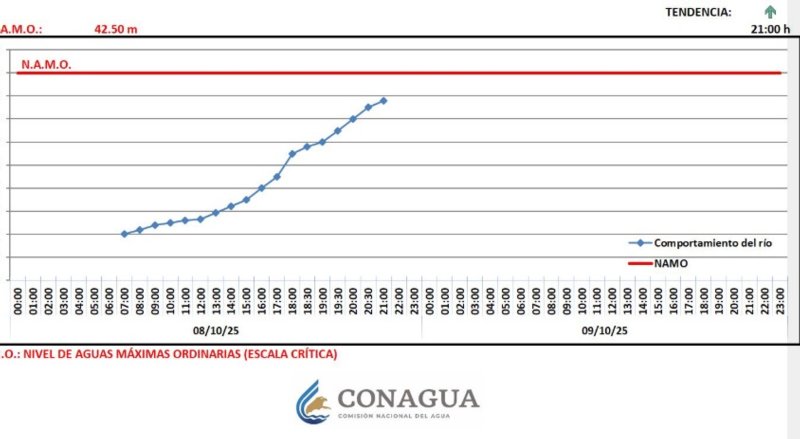 Finalmente, enfatizó que el Servicio Meteorológico Nacional y la Conagua, continuarán monitoreando el comportamiento del río y las condiciones meteorológicas en la región.