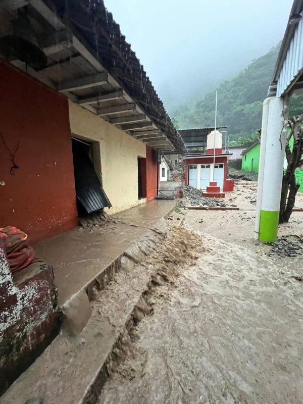 De acuerdo con reportes, el municipio se encuentra totalmente incomunicado por vía terrestre debido a deslaves en la carretera y el colapso de un puente, por lo que los habitantes no pueden salir y solicitan a las autoridades que se habilite un puente aéreo.