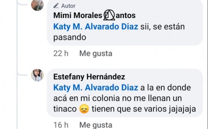 “1 tinaco 250 un manches”, escribió Katy M. Alvarado Díaz, a quien le respondieron Elena Ramón y Doriblue Luna que los piperos les cobraron 400 y 500 pesos por el llenado de un tinaco.