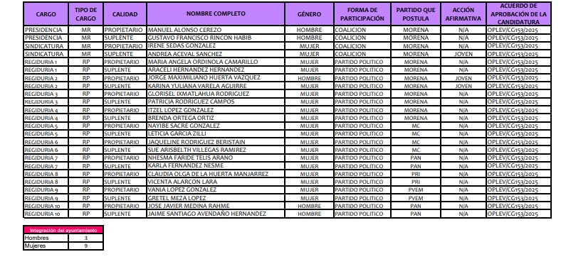 En el municipio de Córdoba, cuyo presidente municipal electo es el morenista MANUEL ALONSO CEREZO, el ayuntamiento quedó integrado de la siguiente forma: