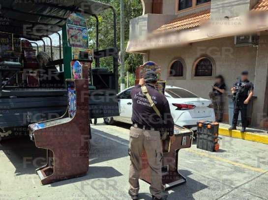 En el municipio de Tamiahua elementos de la Fiscalía General de la República (FGR) catearon dos inmuebles y aseguraron 19 máquinas tragamonedas.