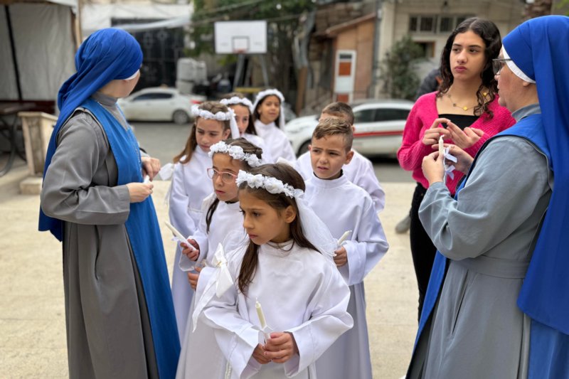 En Gaza, la comunidad cristiana está compuesta por alrededor de un millar de personas, la mayoría de la rama greco-ortodoxa y tan solo unos 180 católicos. Estos últimos se refugian desde hace casi un año en esta iglesia y otro recinto religioso de la capital gazatí, en lugar de haber huido al sur como les exigió el Ejército israelí.