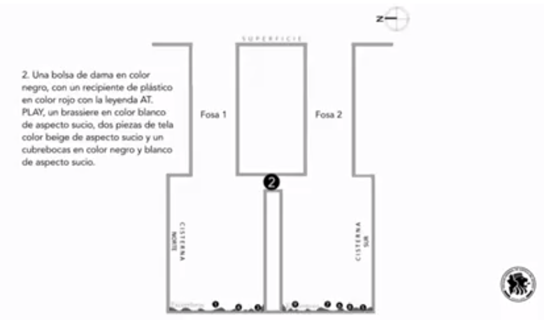 De acuerdo con documentos del Departamento de criminalística y servicios periciales de la Fiscalía de Nuevo León, en el interior de la cisterna se hallaron: