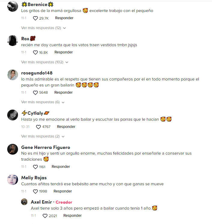 Entrevistado por Milenio Televisión, el menor asegura que le divierte bailar como viejito, mientras que en las redes sociales es ovacionado por los internautas quienes aplauden su entusiasmo pese a su corta edad.