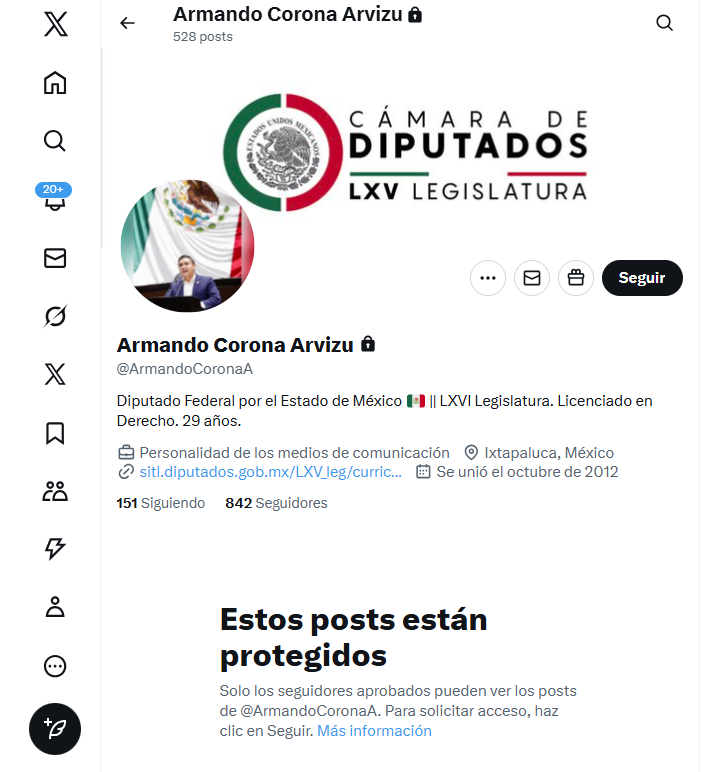 Bloqueó su cuenta de X, antes Twitter, Armando Corona Arvizu, legislador de Morena que propuso cárcel de hasta 6 años para quienes usen stickers o memes que ridiculicen a políticos, protegió su cuenta en X tras la polémica por su iniciativa.