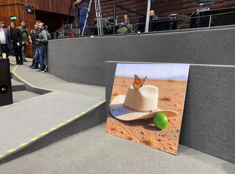 Asimismo, los legisladores colocaron la imagen de un sombrero con un limón en protesta por el homicidio del líder de la Asociación de Citricultores de Apatzingán, Bernardo Bravo. Y pusieron velas electrónicas sobre las curules.