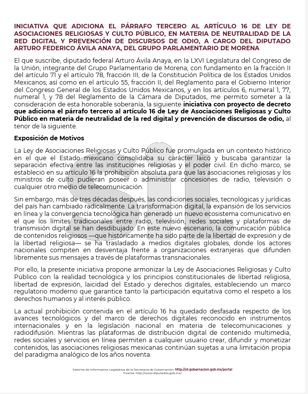 Preocupa a la iglesia católica una iniciativa de Morena sobre publicación de contenido religioso en redes sociales, dio a conocer el secretario general de la CEM, Héctor Mario Pérez. Consideró necesario un diálogo con el gobierno federal para analizar el contenido de la iniciativa.