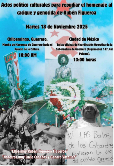 Luego del homenaje al exgobernador Rubén Figueroa Figueroa, hecho por la mandataria morenista de Guerrero Evelyn Salgado, grupos de resistencia convocaron a una doble manifestación durante este martes 18 de noviembre, en protesta por la ceremonia hecha en honor al expolítico, implicado en desapariciones y asesinatos contra disidentes durante la Guerra Fría.