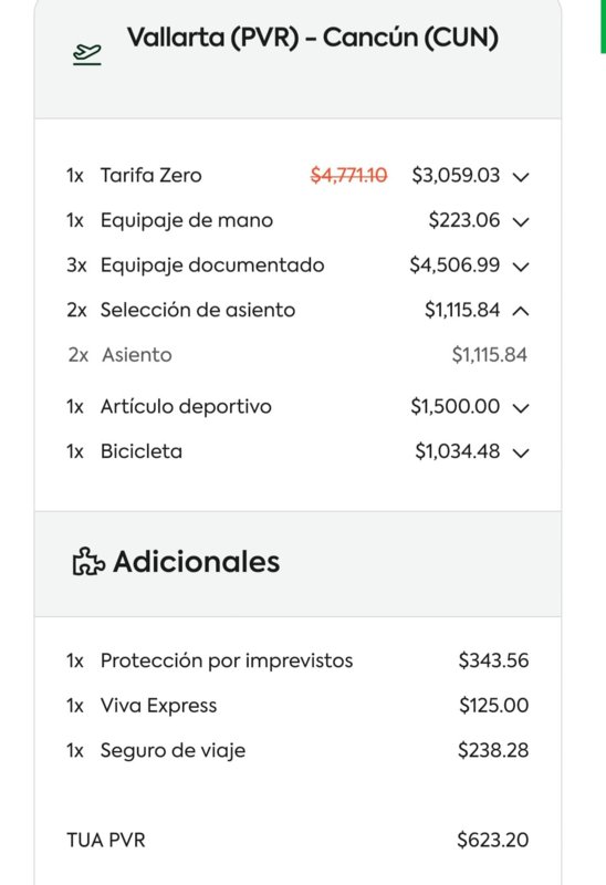 Las modificaciones le generaron un cargo adicional cercano a los 9,200 pesos, además de la contratación de seguros de viaje, lo que elevó el costo total de su boleto de 3,000 a aproximadamente 12,700 pesos, afectando de manera directa su economía.