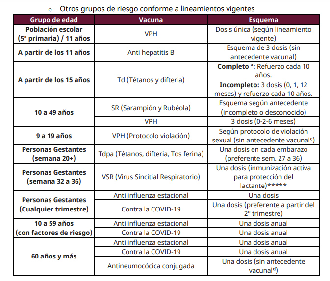 Estas son las vacunas disponibles de acuerdo al rango de edad: