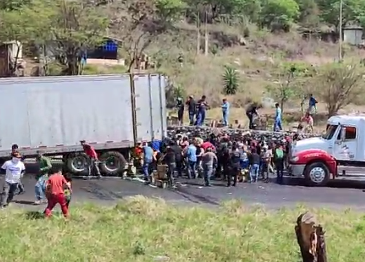 Al lugar de igual forma acudieron oficiales de la Policía Municipal, Ministerial y Estatal, así como Paramédicos de Protección Civil Municipal y Capufe, además de Bomberos Metropolitanos, personal de grúas y oficiales de la Guardia Nacional división Carreteras, quienes nada hicieron para impedir los actos de rapiña, incluso se observó que de igual forma participaron en ella.