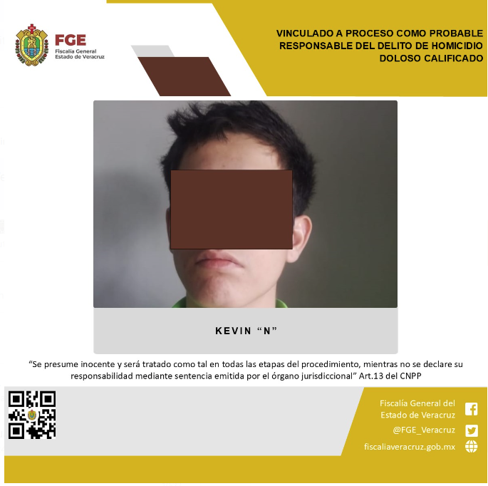 La Fiscalía General del Estafo informa que obtuvo de un juez vinculación a proceso y prisión preventiva en contra de Kevin “N” como probable responsable del delito de homicidio doloso calificado de su propio padre.