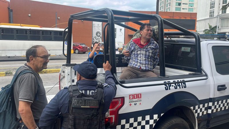 Los elementos policiacos lo sacaron de la plaza y se lo llevaron a bordo de una patrulla de la Policía Estatal.