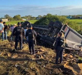 El sitio del percance permanece acordonado, mientras personal de seguridad y de la Guardia Nacional División Carreteras coordina las labores de limpieza y retiro de la carga para restablecer la circulación.