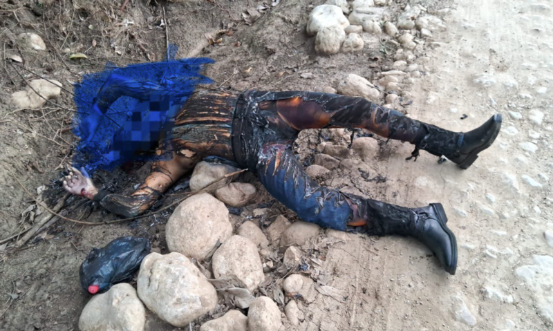 Testigos refieren que dos personas fueron atacadas a balazos y una de ellas recibió el tiro de gracia para posteriormente, ser calcinada con gasolina.
