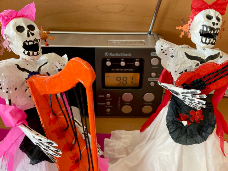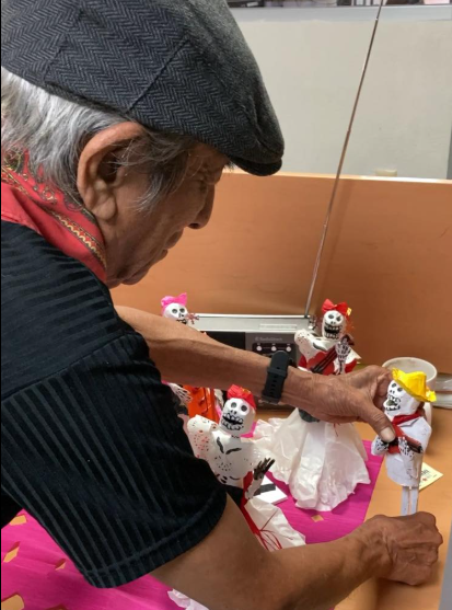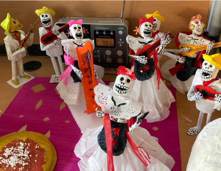 En esta ocasión llevó al séptimo piso del edificio Pazos unas calacas elaboradas a base de cartonería, las cuales portaban instrumentos musicales.