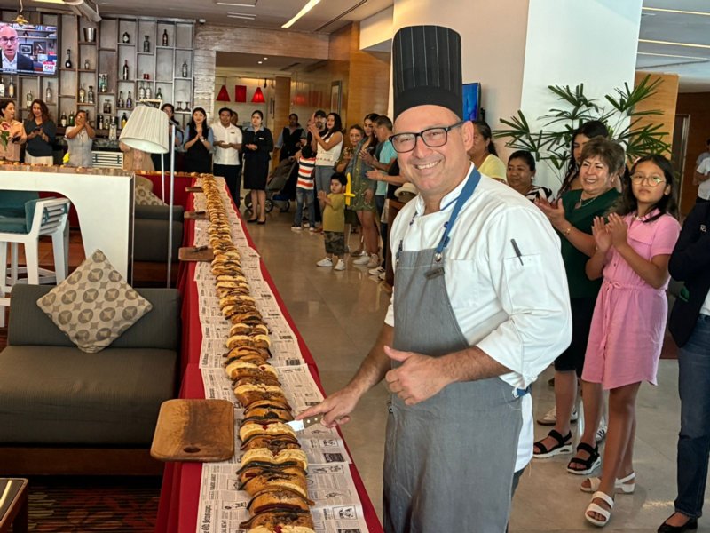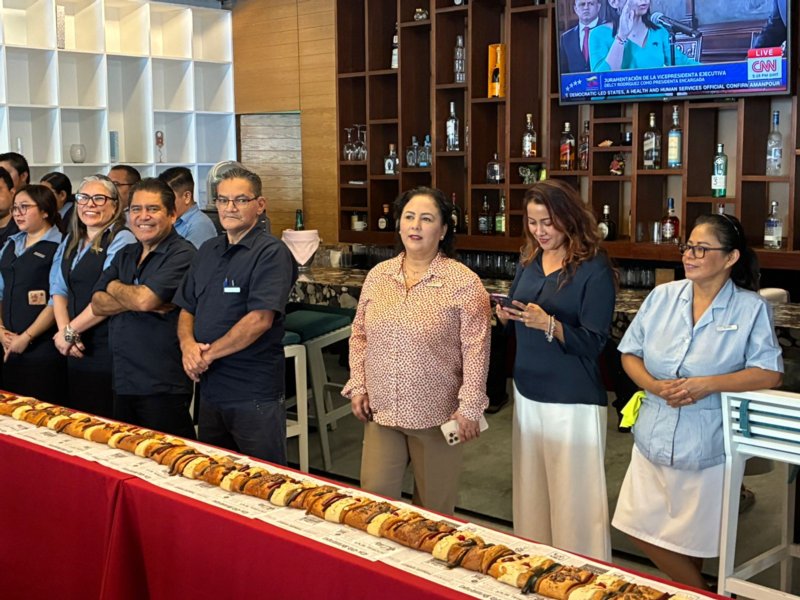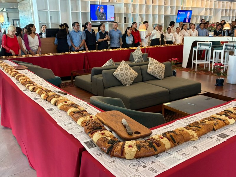 Como cada año desde el 2018, Hotel Emporio Veracruz celebra el Día de Reyes partiendo una enorme rosca, la cual en este año midió 40 metros y fue elaborada por el área de Panadería y Pastelería del propio hotel.