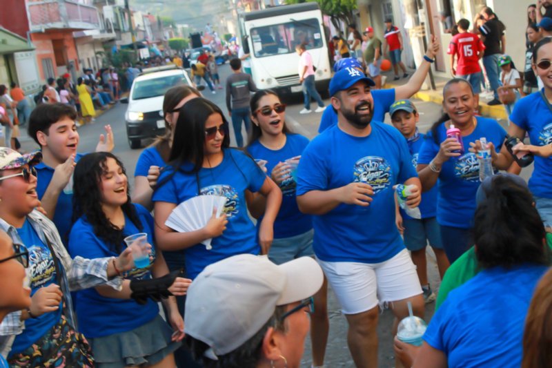 Los reyes de la alegría: Valentina Figueroa y Jesús Acosta Inclán, así como las pequeñas majestades: Emma Sophia Robles Molina y Eduardo Azael Escobedo Delgado con sus respectivas cortes reales no pararon de bailar durante el recorrido saludando a la concurrencia, así como al munícipe Alberto “Beto” Cobos.