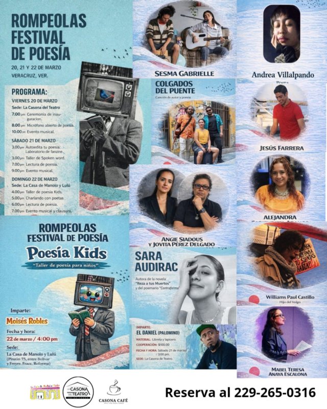 En un esfuerzo por transformar la palabra en una experiencia viva y colectiva, se anuncia la primera edición del Rompeolas Festival de Poesía. El evento se llevará a cabo los días 20, 21 y 22 de marzo, teniendo como escenarios la emblemática La Casona del Teatro y La Casa de Manolo y Lulú.