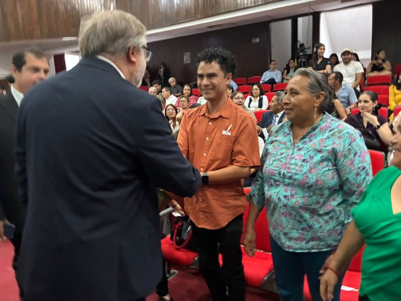 La señora Norma Romero Vásquez, con la sencillez que caracteriza a quien sirve sin esperar nada a cambio, recibió la distinción de manos del rector P. Francisco Javier Alonso Arroyo. Entre acordes de son jarocho y la mirada atenta de los presentes, recordó que su labor nació de la intuición y el corazón: “Somos mujeres dedicadas al campo que empezamos a trabajar sin imaginar que esto iba a crecer”, expresó conmovida.