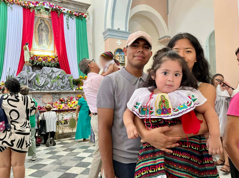 “Es muy emocionante, la verdad mi me gusta, mi religión es el catolicismo, entonces a mí me gusta mucho la Virgen y se siente muy bonito estar en la presencia y la bendición de Dios para mi hija”.