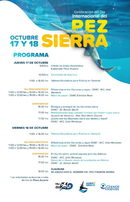 Dijo que el 17 de octubre a las 9 de la mañana se elevará un globo de helio con la imagen del pez sierra o tiburón sierra de 7 metros de largo por 4 metros de ancho. Este mismo día, a las 10 md ela mañana será la ceremonia de apertura de las actividades.