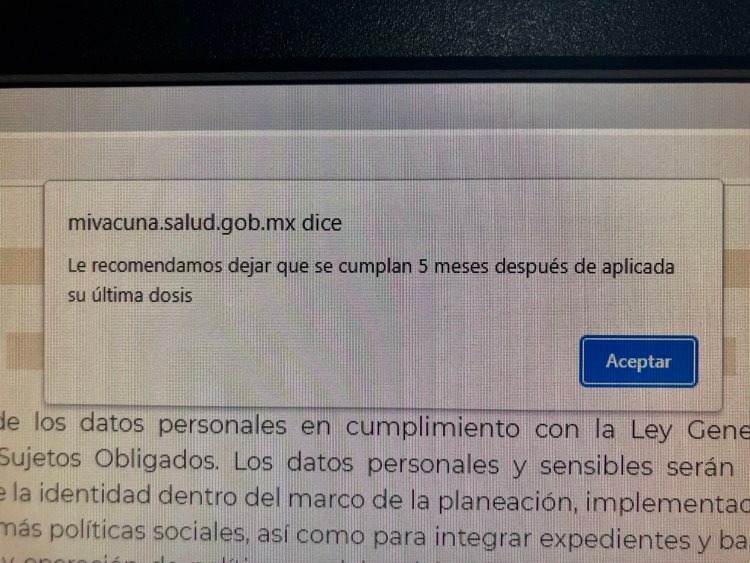 Jóvenes desde 30 a 39 años de edad han buscado registrarse en el portal mivacuna.salud.gob.mx/ para recibir la vacuna de refuerzo contra COVID-19, sin embargo no permite hacerlo si la persona no tiene al menos cinco meses de la aplicación de la segunda dosis.