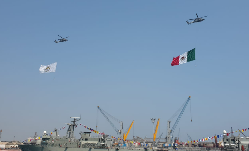 Al estruendo de los cañonazos y la entonación del himno nacional mexicano dio inicio el evento en la macroplaza del malecón de Veracruz, unos helicópteros con la bandera de México y el escudo de la Secretaría de Marina, surcaron el cielo en el puerto de Veracruz.