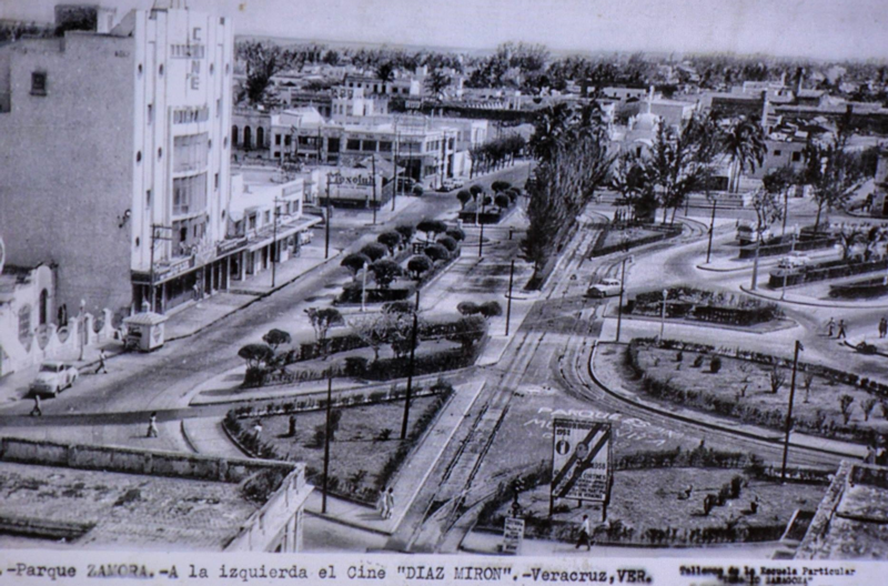 Aquí mostramos una foto panorámica, donde se distingue el Parque Zamora, el Cine Díaz Mirón, aún no estaba la gasolinera de la calle Víctimas.