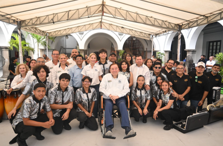 El Ayuntamiento de Veracruz, entregó instrumentos musicales a jóvenes del grupo Latido Gruperro, ganadores del Encuentro de Bandas del programa Orquestando Cumbia.
