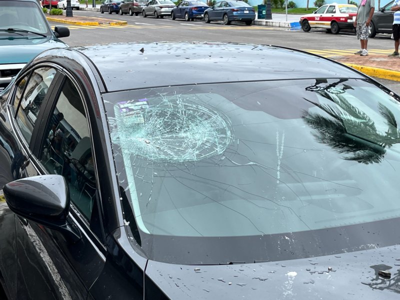 Fueron varios pedazos de escombro los que se desprendieron, uno de alrededor de 25 centímetros y otros más pequeños, uno de esos fragmentos cayó en el parabrisas de un coche color gris obscuro, con placas de circulación del estado de Veracruz.
