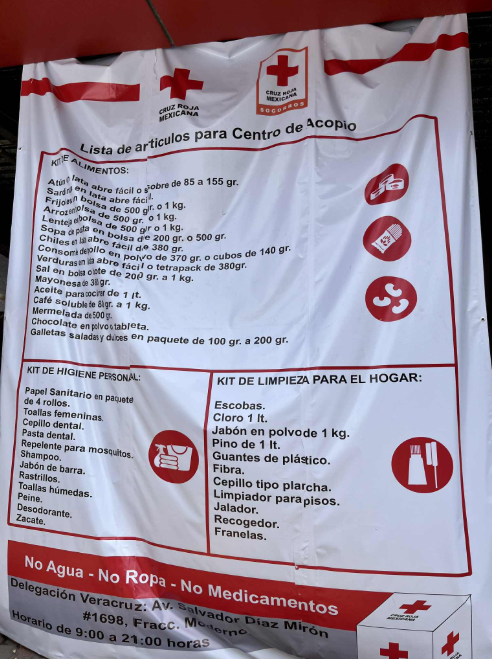 La Cruz Roja delegación Veracruz-Boca del Río alista víveres para las zonas afectadas en el norte del estado.