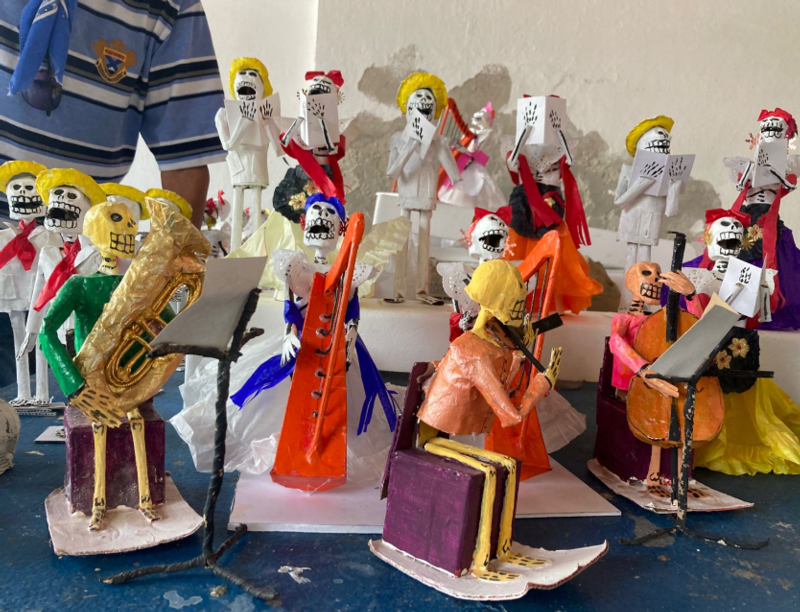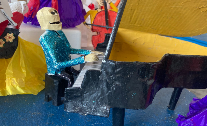 Son alrededor de 100 catrinas de cartón, así como una figura de Agustín Lara tocando el piano y una orquesta sinfónica que representarán la obra.