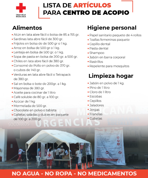 En Veracruz, el centro de acopio está en la sede de la Cruz Roja en Salvador Díaz Mirón #1698 entre Orizaba y Santos Pérez Abascal, fraccionamiento Moderno.