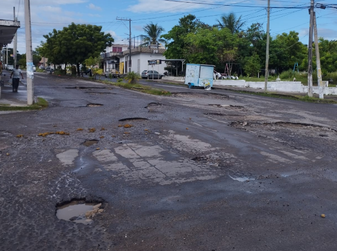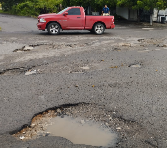 Agregó que uno de esos baches abarca el carril de la vialidad, lo que genera caos entre los automovilistas que circulan por la zona.