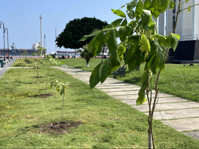 Los arbolitos fueron plantados en la orilla de lado malecón de la torre de Pemex.