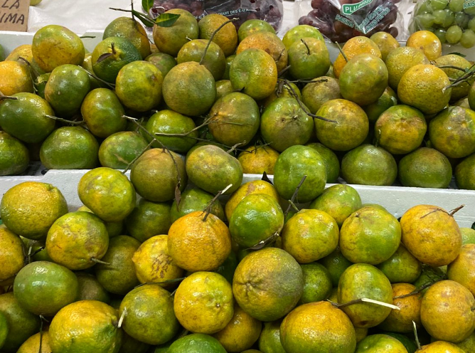 Valentín Barojas comentó que también vende mandarina importada de Perú, está a diferencia de la local es un poco más cara, ya que no tiene semillas.