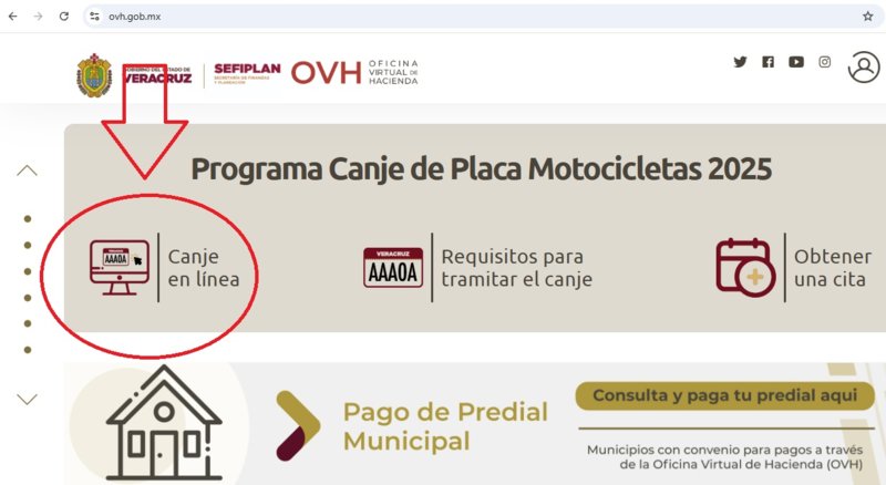 XEU ingresó al sitio de OVH y corroboró que ya aparece la opción de canje en línea; de acuerdo con autoridades del gobierno de Veracruz, a partir de ahora los contribuyentes podrán hacer el realizar el trámite en línea y ya solo tendrán que recoger las placas en las oficinas de Hacienda del Estado.
