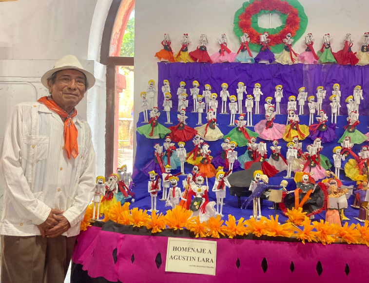 El artista Milburgo Treviño inauguró este mediodía su exposición de catrinas de cartón por el Día de Muertos, en esta ocasión será homenajeando a Agustín Lara.