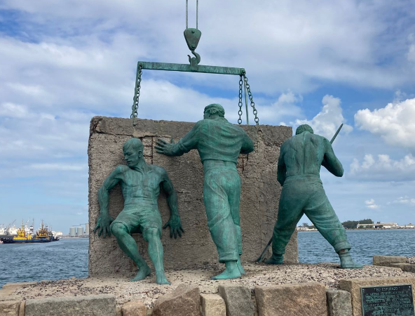 “Testigos del Futuro”, “El Esfuerzo”, “Buzo” y “Sembradores de vía de las escolleras”, son esculturas hechas de bronce y hasta el momento han resistido los embates de los nortes y el salitre que llega del mar.