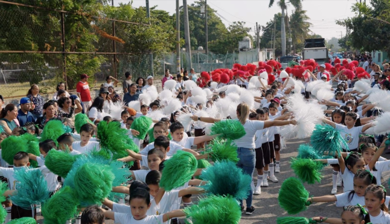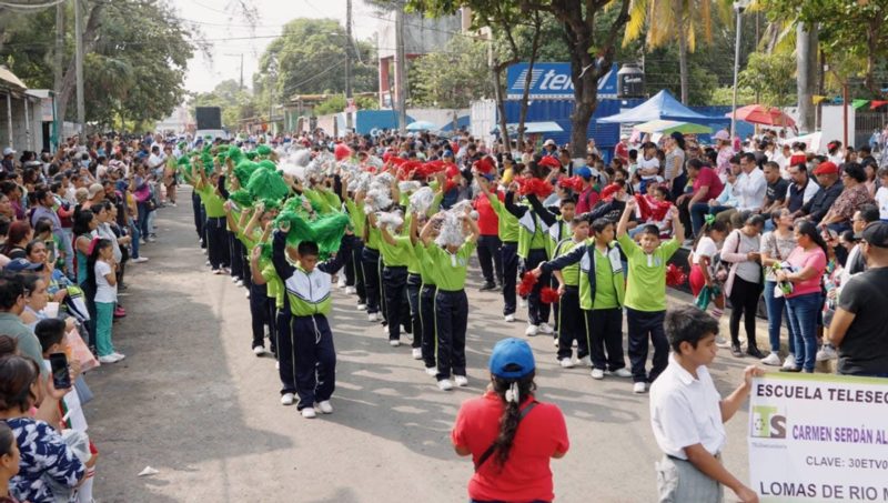 El contingente se integra de alumnos de escuelas de diferentes niveles educativos: preescolar, primaria, secundaria, bachillerato, así como Centros de Educación Múltiple, de Tejería, Santa Fe, La Loma, colonia Progreso, Casas Ara, Rio Medio 4, así como de Las Amapolas.
