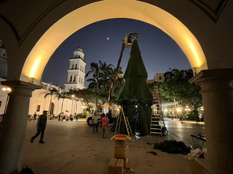 A un mes de la Nochebuena el zócalo de Veracruz se viste de Navidad.
