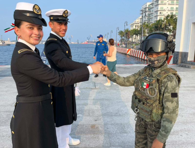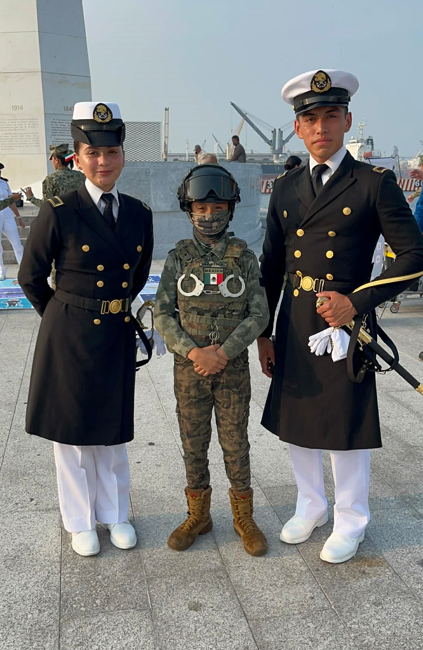 Emiliano no se pierde ni un evento organizado por La Marina, asiste, mira con respeto la insignia nacional, anhela con amor el uniforme de la institución y observa con detalle cada movimiento de los navales.